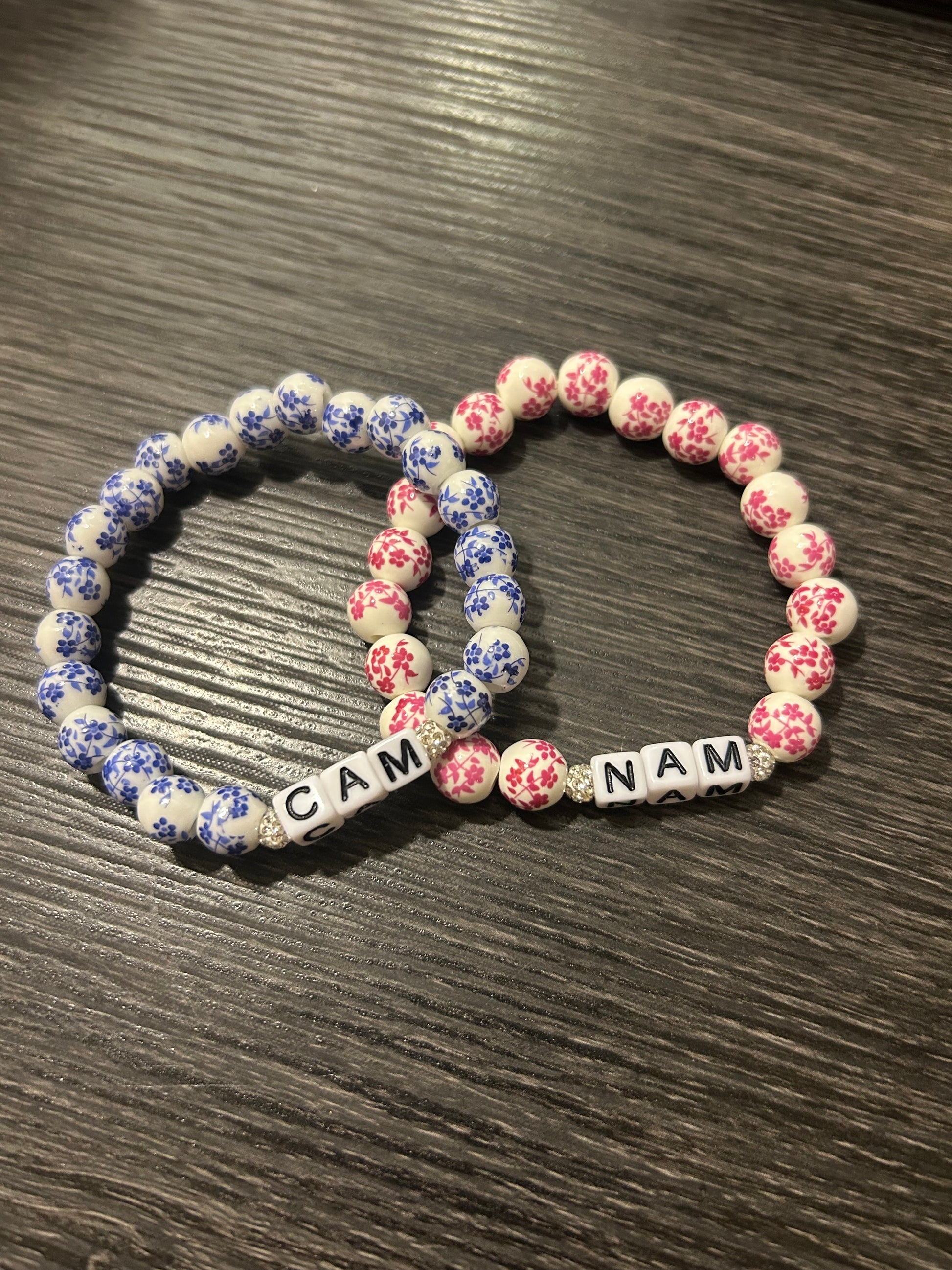 Add a pop of color and personality with this adorable bracelet, featuring name beads and sweet flower prints that bring major happy vibes. Whether it’s your name, your BFF’s, or your fave word — this bracelet is made to shine.