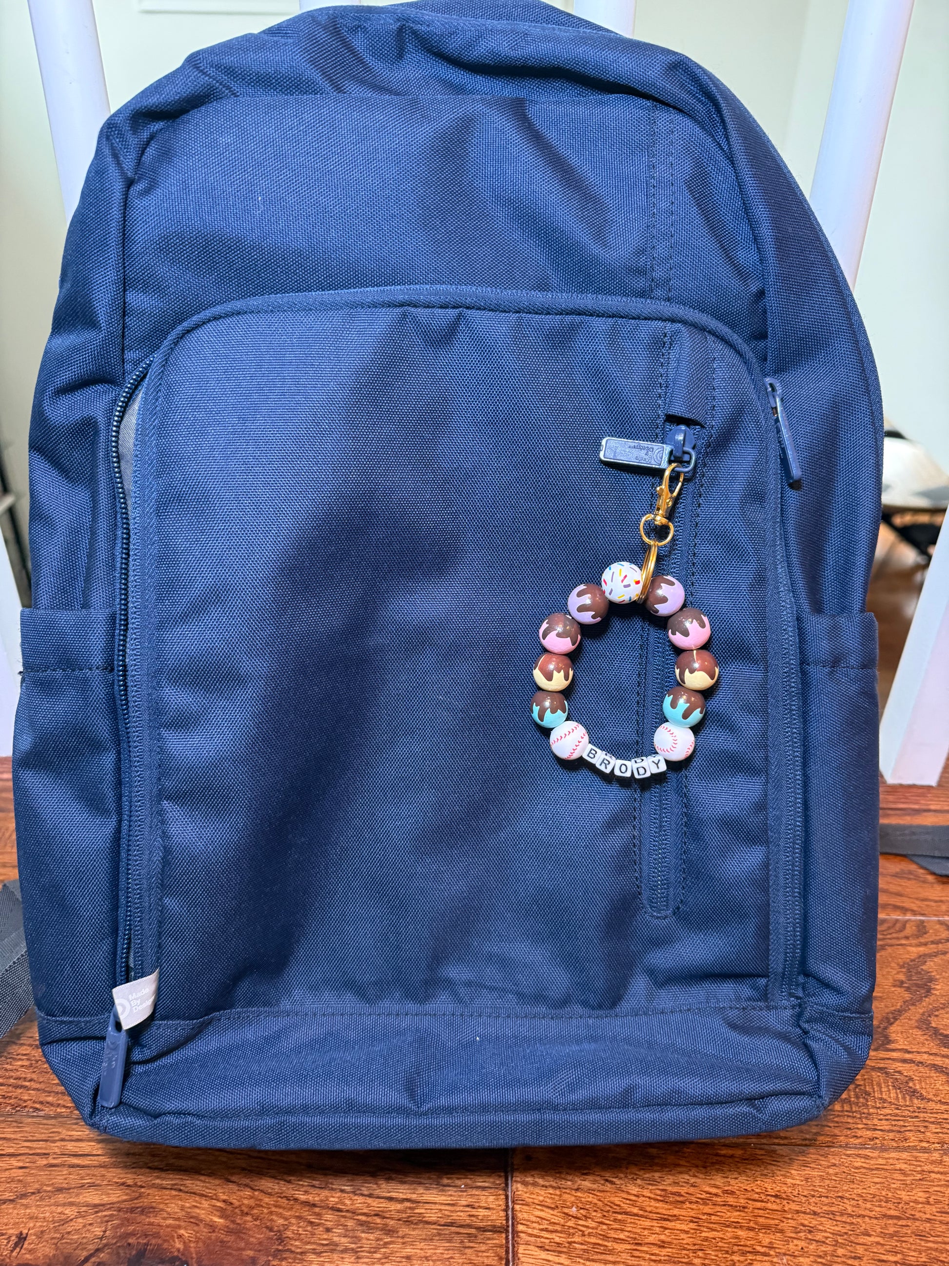 This custom keychain features colorful ice cream drip beads, baseball accents, and personalized name beads — the perfect mix of sporty and sweet. Clip it on backpacks, lunch bags, or sports gear for back-to-school style that stands out.