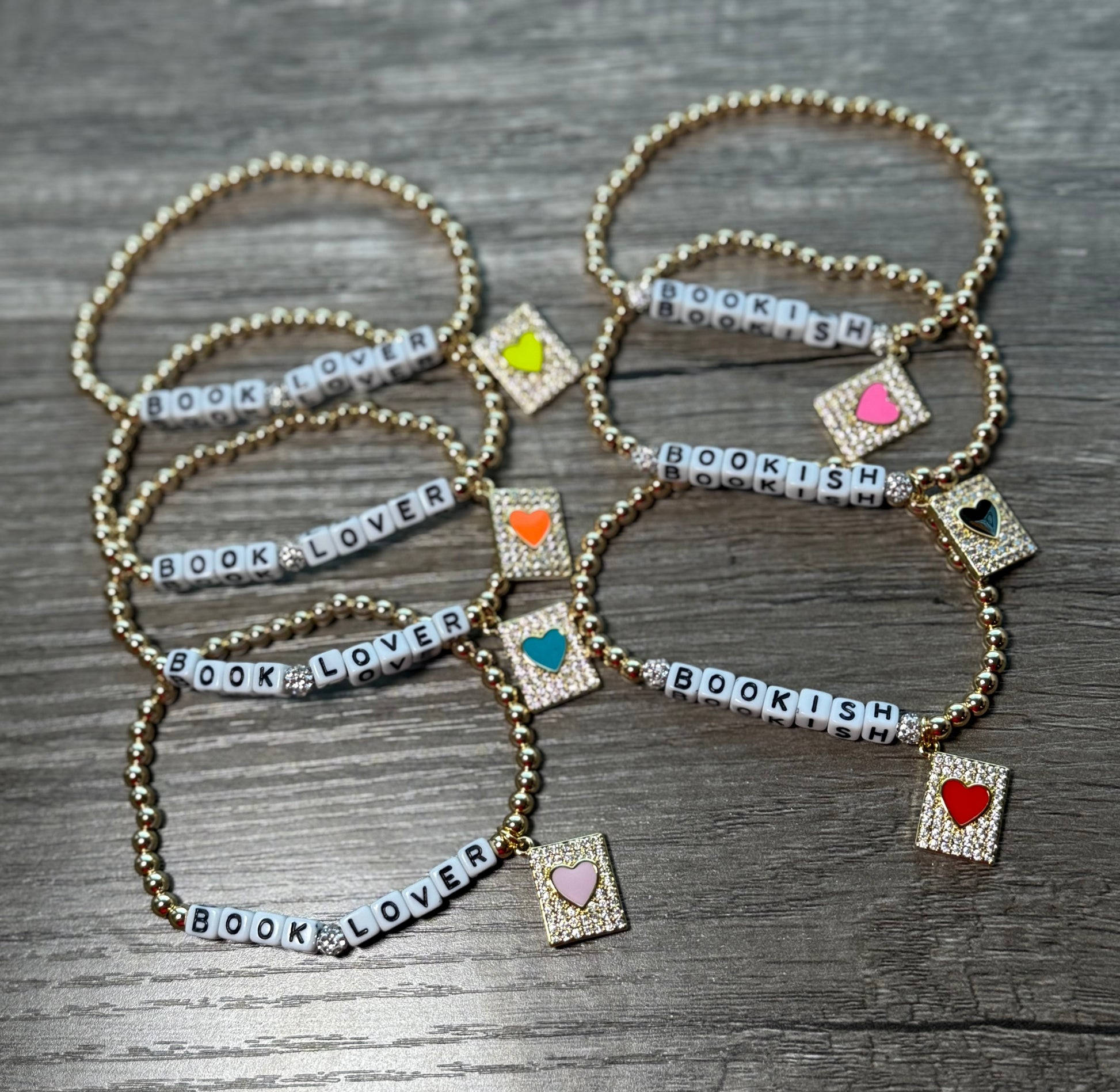 The perfect bracelet for every book-obsessed babe. Shiny 14k gold-plated beads meet a colorful enamel heart charm and your choice of BOOK LOVER or BOOKISH lettering. Cute, fun, and made for anyone who always has “one more chapter” to read.